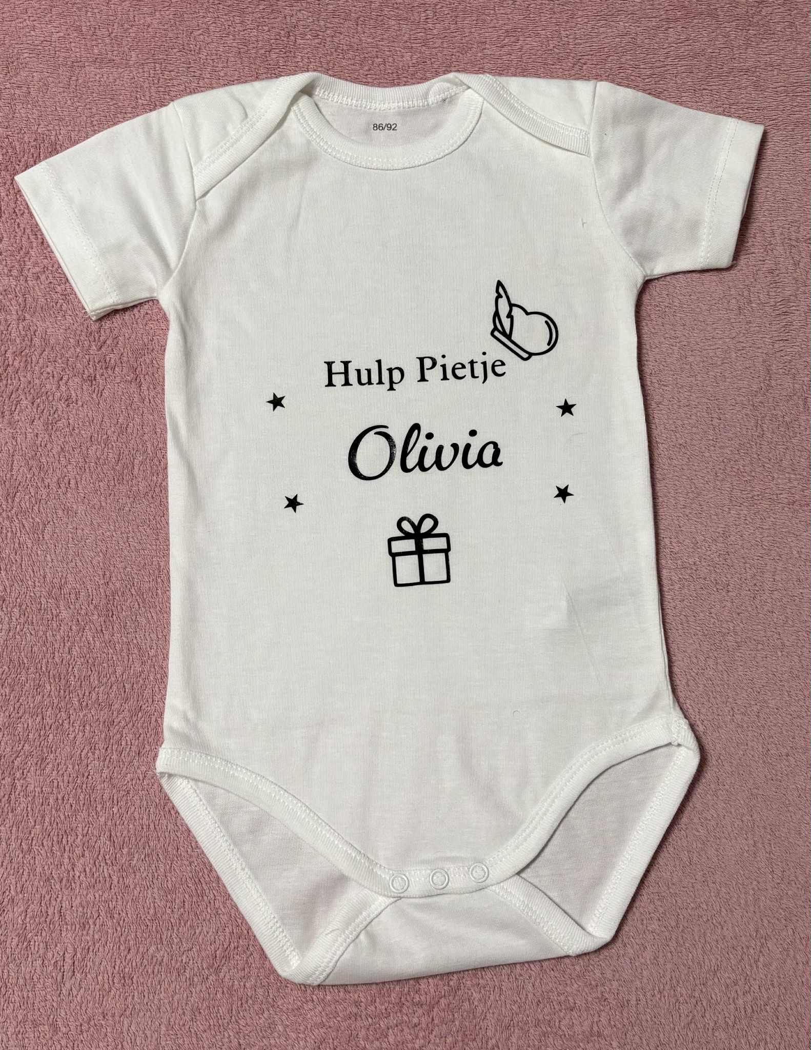 Een leuke body om te dragen rond de periode van Sinterklaas. De body is verkrijgbaar in licht roze, licht blauw, donker blauw, rood en zwart. Ook T-shirts verkrijgbaar.